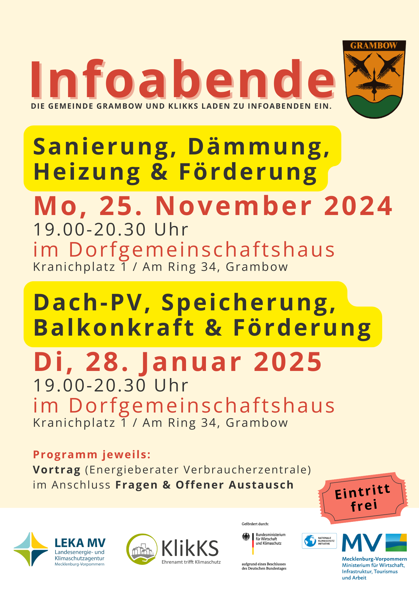 [Amtlicher Beitrag] Die Gemeinde Grambow und KlikKS laden zu Infoabenden ein.