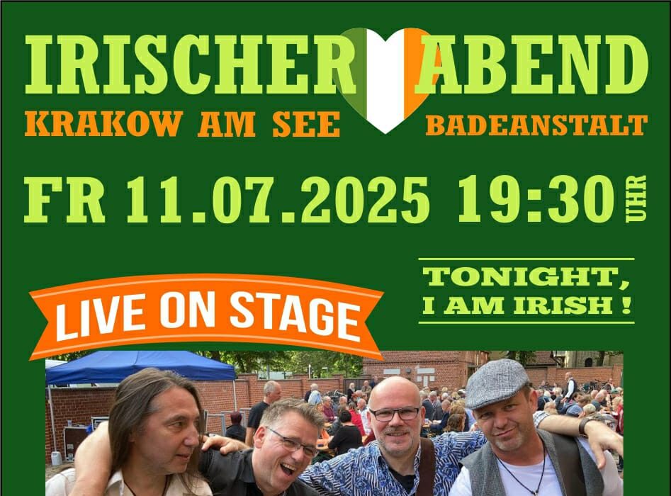 Am 11. Juli um 19.30 Uhr findet in der Historischen Badeanstalt in Krakow am See wieder der traditionelle Irische Abend statt. Für zünftige irische Musik sorgt die Gruppe Larkin. Um…