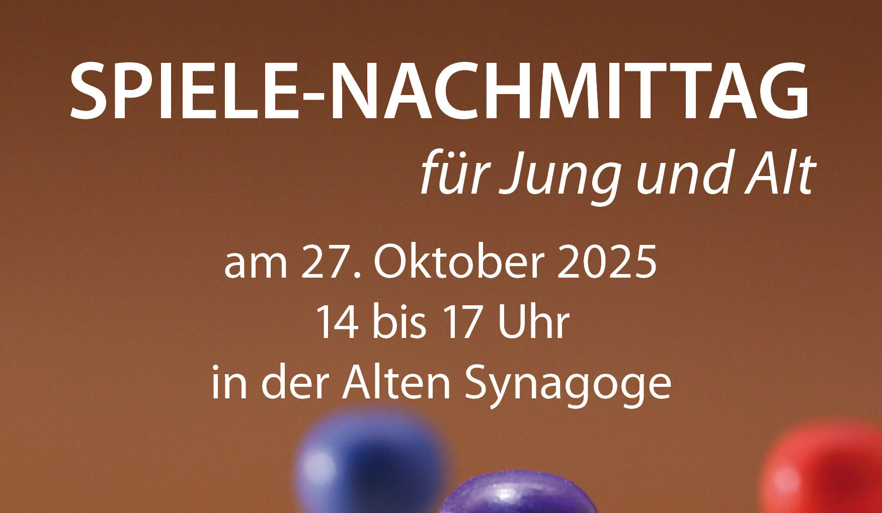 Am 27. Oktober von 14 bis 17 Uhr gibt es wieder bei Kaffee und Knabberzeug den beliebten Spielenachmittag in der Alten Synagoge. Spiele werden gestellt oder können mitgebracht werden. Spenden…