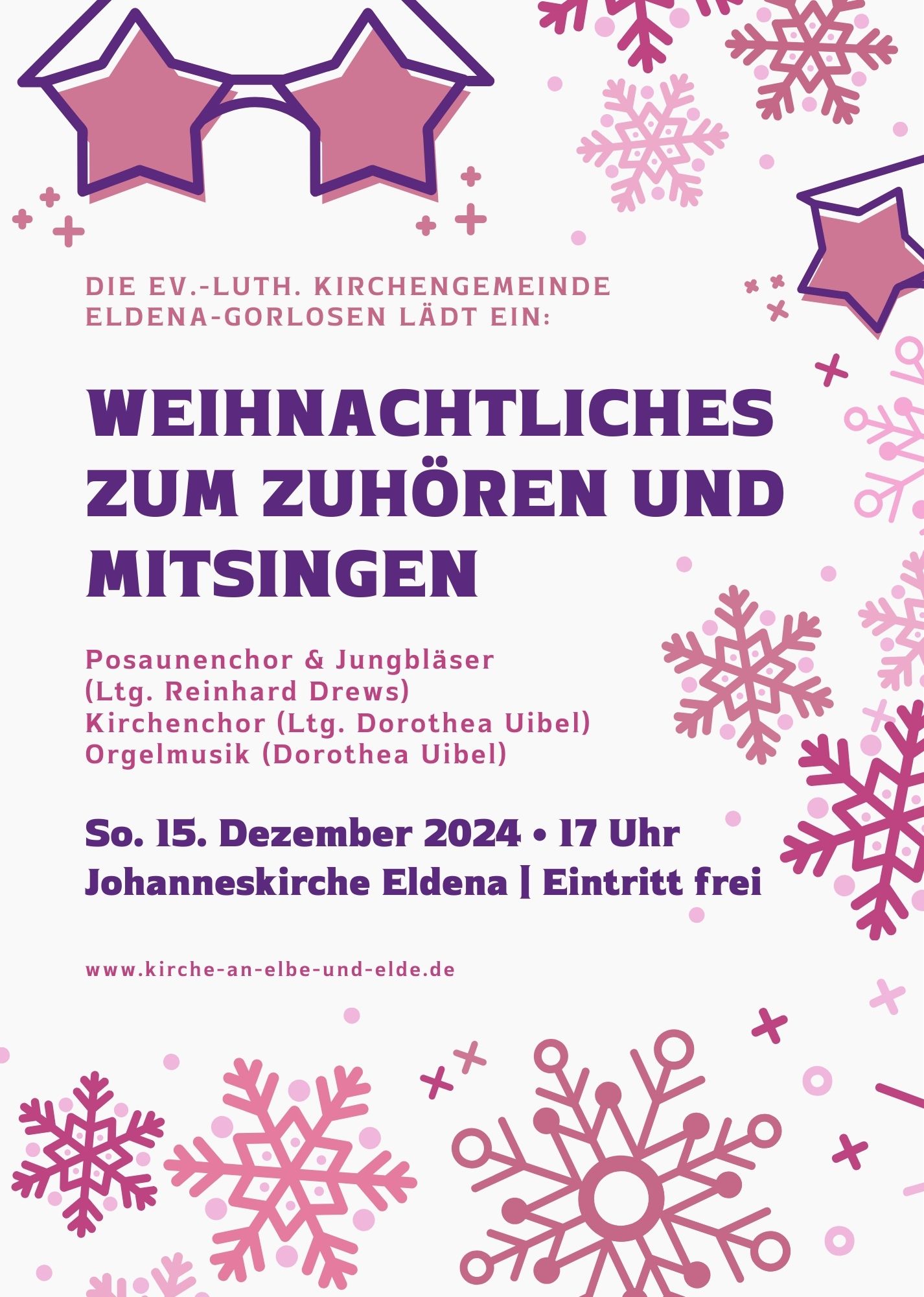 Posaunenchor & Jungbläser (Ltg. Reinhard Drews) Kirchenchor (Ltg. Dorothea Uibel) Orgelmusik (Dorothea Uibel) Eintritt frei - Kollekte www.kirche-an-elbe-und-elde.de