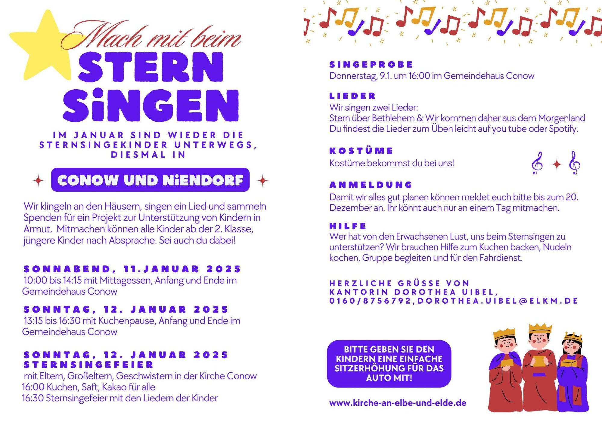 Mach mit beim Sternsingen! Im Januar sind wieder die Sternsingekinder unterwegs, diesmal in Conow und Niendorf. Wir klingeln an den Häusern, singen ein Lied und sammeln Spenden für ein Projekt…