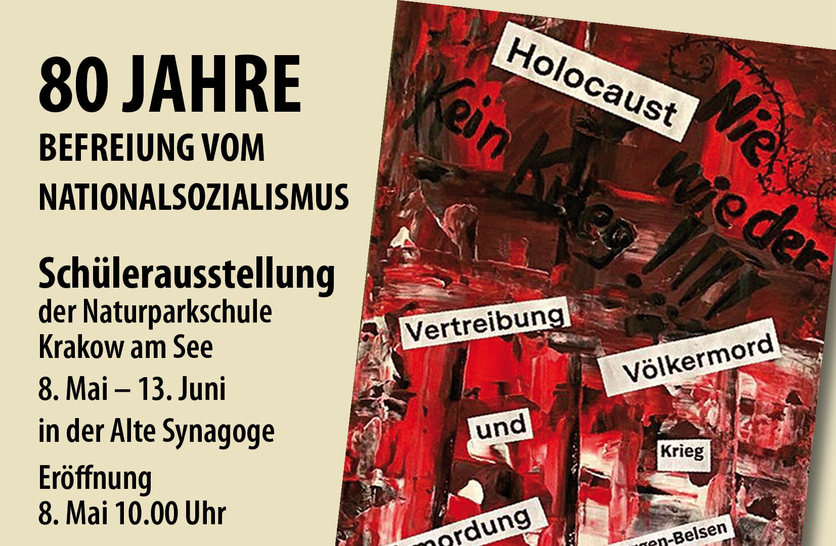 Am 8. Mai um 10 Uhr eröffnet der Kulturverein "Alte Synagoge" Krakow am See e.V. eine Schülerausstellung der Naturparkschule zum Thema "80 Jahre Befreiung vom Nationalsozialismus". Schüler und Schülerinnen haben…