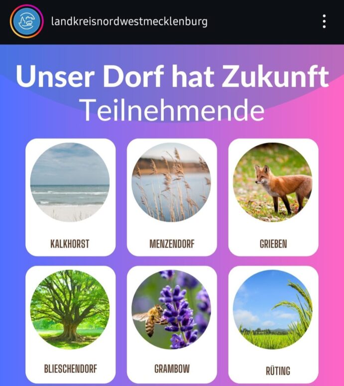 Nachdem die Gemeinde Grambow in 2021 den Landkreiswettbewerb „Unser Dorf hat Zukunft“ gewinnen konnte, ist viel passiert. Ein dritter Platz beim Landeswettbewerb in 2022 und eine Silbermedaille beim Europawettbewerb „Lust auf Zukunft“ in 2024 sind hier nur beispielhaft genannt.