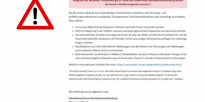 Der Zweckverband Schweriner Umland informiert: Aufgrund dringend notwendiger technischer Arbeiten in den Ortslagen Wodenhof, Charlottenthal, Neu Wandrum & Hof Wandrum wird am 10.11.2025-13.11.2025 von 08:30 Uhr – 16:00 Uhr die Trinkwasserversorgung…