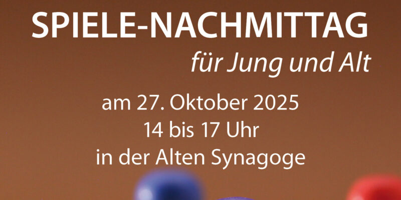 Am 27. Oktober von 14 bis 17 Uhr gibt es wieder bei Kaffee und Knabberzeug den beliebten Spielenachmittag in der Alten Synagoge. Spiele werden gestellt oder können mitgebracht werden. Spenden…
