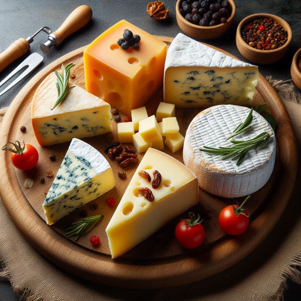 vier verschiedene Schnittkäsesorten auf einem Holzbrett ohne weitere Dekoelemente 15. Oktober 2025 1024 × 1024