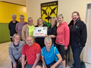 Die Mitglieder unseres Sportvereins BSV Blau-Weiß Grambow e.V. bedanken sich recht herzlich bei den Helios-Kliniken für die Spende eines großen „Erste-Hilfe-Koffers“. Es ist gut zu wissen, dass unsere Übungsleiter eine Erste-Hilfe-Ausbildung haben und jetzt im Bedarfsfall den Inhalt des Koffers auch nutzen können. Mit 75 Mitgliedern in 7 Sportgruppen ist unser Verein in Grambow sportlich aktiv.